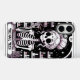 A unique nail technician promotional phone case, (Select your device model) featuring a skeleton with tools of the nail technician. A unique style with a touch of humour. Pink & black.