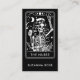 Tarot card theme nurse business card with nurse skeleton on a black background.