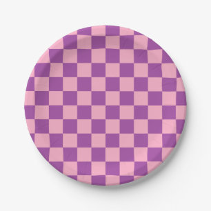 Simple Modern Pink Plaid Bow Paper Plate