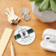 This pink, purple, green and white MacKenzie Dress Tartan and Thistle wedding favour keychain has a stylised Canada Thistle on a white background framed in green, with a tartan band across the top that matches the wedding invitation shown below. The tartan is specifically the MacKenzie Dress tartan, but that can be changed out to your tartan by email request. It would be perfect for a Scottish or Celtic wedding. If you have any requests, please email niteowlstudio@gmail.com.