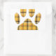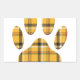 A cute tartan, plaid, dog paw print in orange, black, white, green and red colours.