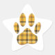 A cute tartan, plaid, dog paw print in orange, black, white, green and red colours.