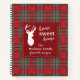 Cute home sweet home Christmas family favourite recipe notebook you can easily customise by clicking the "Personalise" button, Featuring deer silhouette and clan Mackbean tartan in red chequered pattern.