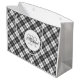 Tartan pattern Christmas black white Monogram Large Gift Bag