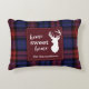 Cute home sweet home Christmas pillow you can easily customise by clicking the "Personalise" button, Featuring deer silhouette and clan MacLachlan tartan in red, and purple check.
