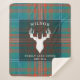 Family Name, location, and year established Wilson orange turquoise plaid with deer head silhouette Sherpa Blanket