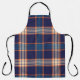 Vibrant tartan plaid with navy blue, orange, and beige hues.