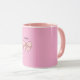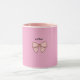 Cette tasse à café élégante présente l'adorable nœud papillon rose pastel, délicatement dessiné et entouré de notre fond rose pâle et apaisant. Que vous dégustiez votre café, votre thé ou votre chocolat chaud, cette tasse est conçue pour infuser chaque gorgée d'une dose de charme discret.