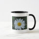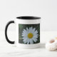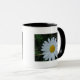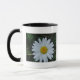 Eine grosse, weisse Margeritenblüte auf einem dünnen beigen Stäbchen, vor dunklem Hintergrund ist auf dieser Tasse, hier mit schwarzem Rand und Henkel. Die Farben für Rand und Henkel sind wählbar. Die Tasse ist in verschiedenen Varianten erhältlich.