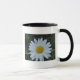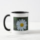 Eine grosse, weisse Margeritenblüte auf einem dünnen beigen Stäbchen, vor dunklem Hintergrund ist das Design dieser Tasse.