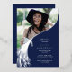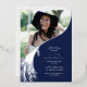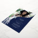 Let's celebrate your grad's big milestone with a modern silver foil graduation party invitation. Each invite features a classic navy blue background, a photo of the grad, a graduation day cap topper tassel with the class year '2025', and a simple text template that’s easy to customise. Let family and friends know how much their presence at the special celebration means to you with these timeless cards that are sure to stand out.