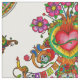Colourful fabric pattern with Tree of Life on Day of the Dead theme. Funny skulls, fired heart, flowers, Catrina and folk elements.