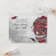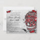 Tattoo Style Muerte skull and Flourishes Invite. A really urban and hip tattoo style Dia De Los Muertes Sugar Skull Wedding Invitation. Features a colourfully decorated Muerte Skull often called a Calaveras, flourishes & leaves, flowers and butterflies. Background is a blue/green distressed look with a hint of writing on it! Created and copyright Julie Farrell 2011. Please do not copy or reproduce outside of Zazzle per copyright legalities.. PLEASE CHECK MY STORE FOR COORDINATING RSVPS AND OTHER WEDDING ITEMS WITH THIS DESIGN.