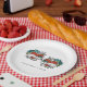 Create custom party supplies for wedding receptions and other special events. These paper plates feature tattoo style graphics with retro style hearts in red with blue flower accents that are ready to be personalised with the name of the bride and groom.