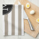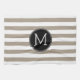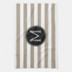 Taupe and White Striped Pattern Black Monogram Tea Towel