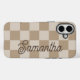Taupe Beige Checkers Script Name Case-Mate iPhone Case