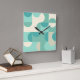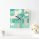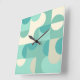 Taupe Beige Teal Blue Mint Green Circles Pattern Square Wall Clock