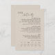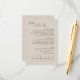 This chic and modern wedding details enclosure card features a fully customisable text and a visual timeline for the order of the day. A contemporary set of fonts in a brown-black font is set against an elegant taupe background. This card forms part of a modern minimalist wedding collection of easy to use, mix and match neutral-coloured stationary for all seasons.