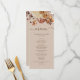 Taupe Fall Leaves Menu. Highlight your wedding meal with a menu card celebrating the season's beauty. It is designed for autumn or winter weddings and features hand-painted burnt orange and terracotta leaves, cream dahlias, and rust-hued roses, accented by elegant dark brown text. Display your dinner details with style—transform each place setting into part of your wedding’s story.