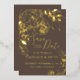 This "Save the Date" announcement design features gold foil peonies and foliage in a modern, minimal line drawing style. The matching gold foil font features classic serifs and a handwritten cursive typography. The back is blank with plenty of room to add additional text or a photo of the couple.