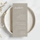 Make your bridal shower a chic affair with the Taupe Minimalist Script Bridal Shower Menu, featuring a refined modern script font that exudes understated elegance. Guests will love the chic simplicity of this menu design. Its minimalist style prevents it from appearing cluttered or overly fussy. The taupe colour adds a subtle touch of personality. It's the perfect menu for the modern bride who wants her shower to feel fresh and contemporary.