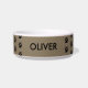 Taupe Paw Print Pattern Personalised Name Pet Bowl