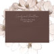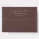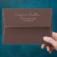 Taupe coloured mailing envelope for your wedding invitations and features your name and address printed on back flap in a modern script style. Personalise your envelope by editing and replacing name and address with your own. Edit further to change font style or colour. Select your envelope size that fits your invitation.