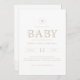 The front of the invitation highlights the shower details, while the back is designed to include additional information such as registry details, books for baby wording, diaper raffle instructions, or display shower notes. This format eliminates the need for extra enclosure cards, making it a stylish and practical choice for modern baby showers.