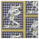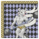 printed with a zodiac inspired design, Taurus the Bull reimagined as a circus strongman minotaur in shades of purple, gold, grey, and black.