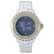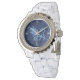 Watch featuring the sun sign for Taurus in soft silver blue, overlaid with the stars of the constellation, against a dark blue, starry sky background