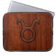 Taurus Zodiac Sign on Mahogany like print Laptop Sleeve