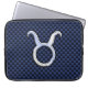 Taurus Zodiac Sign on Navy Blue Carbon Fibre Print Laptop Sleeve