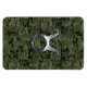 A grunge silver steel style Taurus Zodiac Symbol on a military woodland olive green digital camouflage print background. A modern urban racy design for a great custom gift idea.