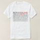 The insight people just have to read! Because it's on a tshirt, of course. Dig at the inpersonal nature of the busy lifestyle. Text reads: "We live in a busy world. People are too engrossed in their own schedules to even notice other people existing around them. They ignore others walking down the street, or sharing a bus stop. They certainly wouldn't speak a "Hello" or "How are you?". But a discovery has been made. This social retardation can be conquered by wearing tautological t-shirts with lots to say, its type getting progressively smaller, so people passing by, who are doubtlessly eaten by curiosity, ask to read it. So, now that we're talking, what's your name?