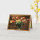 Warm earth tones and mellowed orange tulips give an elegant touch to this arrangement for Mother's Day greetings. Customise inside for a greeting or as an invitation.