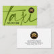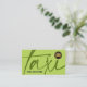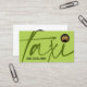 A green cover features a "taxi" signage creation where the dot in the letter-i is replaced by a gold taxi car logo. Near the base of the card lies the phone contact.