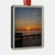 The sun sets over Lummi Island as viewed from the Taylor Street Dock that spans the waterfront in Bellingham, Washington.