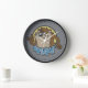 The size of the clock is dramatic and the abstract alcohol ink design is soothing and intricate at the same time. I chose the black frame that adds pop to the blue and gold design. The gold printing would be better in a slightly darker or larger font. I love it and I’m looking for just the right place in ny new apartment. I would recommend this clock for a personal gift or a present. I feel that the quality is excellent for the money! I’m a bit of a clock nut so I’m pretty particular about my purchases. The clock is larger in diameter than many if the clocks I have, so it stands out very well. I think a slightly darker printing color and a moderately larger size would best suit a professional decor or add more impact in a work place item.
