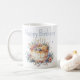 Taza de cerámica con diseño “Happy Birthday”, ideal para celebrar momentos especiales con estilo y dulzura. Presenta una ilustración delicada de una torta de cumpleaños en tonos pastel, acompañada de detalles festivos que transmiten alegría. Su interior y asa en color rosado le aportan un toque elegante y encantador. Perfecta como regalo original o para disfrutar tu bebida favorita en ocasiones especiales.