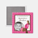 2"x2" Square Custom Pink Mod Mum Polka Dotsl Photo Birth Announcement magnets are printed in high quality and with vibrant colours. Perfect for baby announcements, save-the-date reminders, gifts for family and friends, or even great promotional advertisements for any business. Stick them on your refrigerator, file cabinet, dishwasher, or your own favourite metal surface.