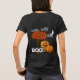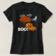 Easy t-shirt Halloween or Harvest Party Costume for the Parent. Great for your Church Party! Cute Pumpkin Family standing by a Tree with Orange Autumn Leaves on a with a black t-shirt. White moon and clouds with a Friendly Smiling Halloween Pumpkin Head Family with a Friendly BOO! With Funny Eyes On Top of each Big Letter!