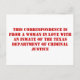 TDCJ correspondence #1 Postcard