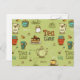 Tea and Honey Tea Time in Green olive background with decorative teapots and other illustrations.