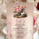 Tea Cup Flowers Glitter Rose Gold 90th Birthday Invitation