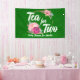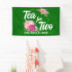Baby shower Tea for Two theme with greenery background and floral circle that can be personalised with your baby shower honorees name.