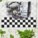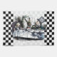16” x 24” kitchen towel with a vintage Alice in Wonderland image of Alice at the Mad Hatter's tea party with the March Hare, and Dormouse on a grey and white chequerboard with wide black and white chequerboard borders. See matching cloth napkin, paper cocktail napkin, cloth placemat, paper placemat and coasters. See the entire Wonderland Kitchen Towel collection in the FOOD/BEV | Linens section.