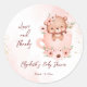 Tea party baby shower cute pink teddy in a cup with flowers sticker template.
