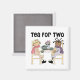 Tea Party with 2 young girls sitting at a table with a teapot and flowers.