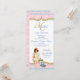 Vintage birthday tea party menu with cute Victorian girl on a pretty pink damask and blue background. This pretty pink, blue and gold tea party menu is easily customised for your event by simply adding your details in the font style and colour of your choice. This is a printed design with no real glitter.