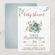 Cute baby shower invitations featuring watercolor tea cup with flowers, and polka dots.